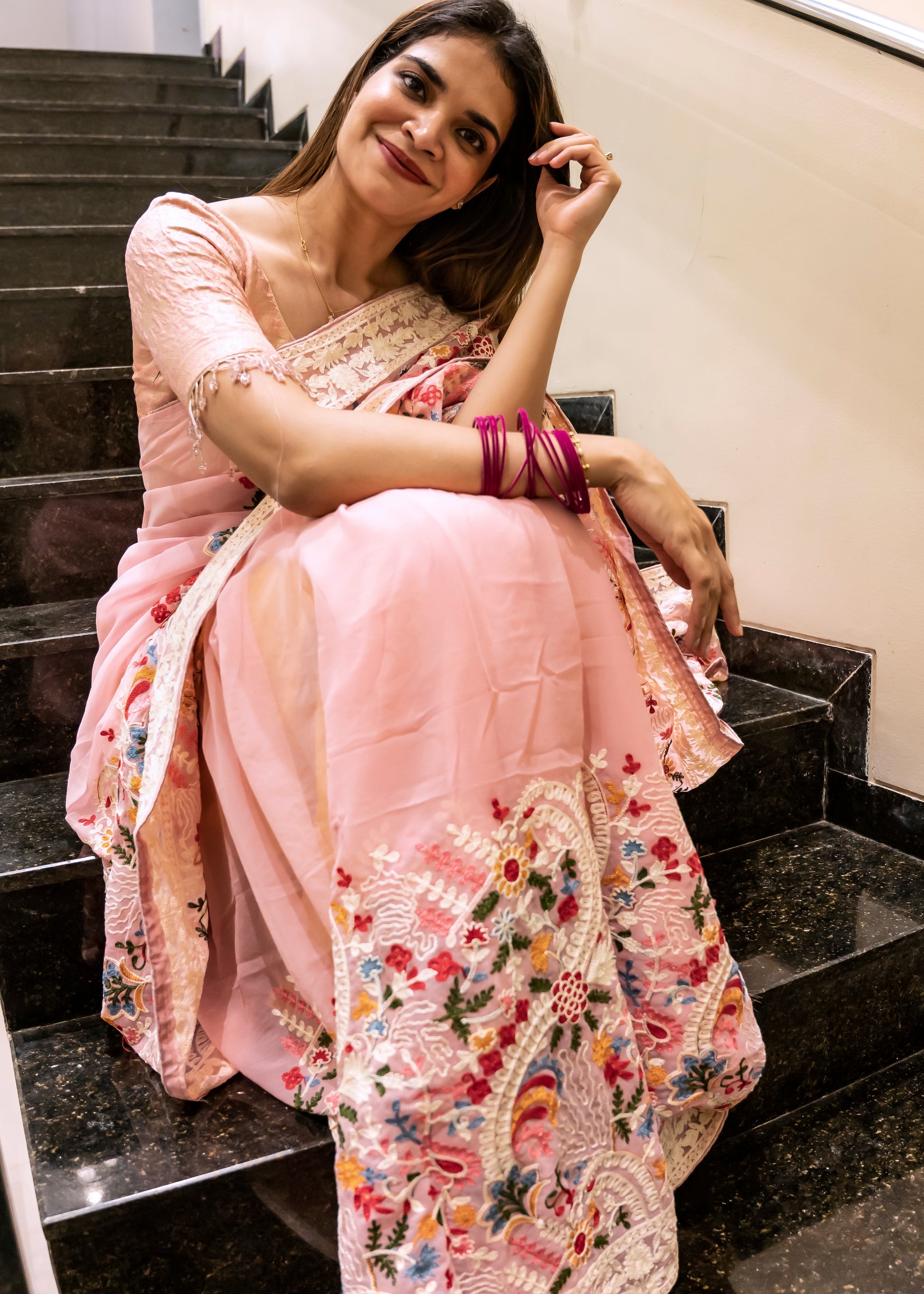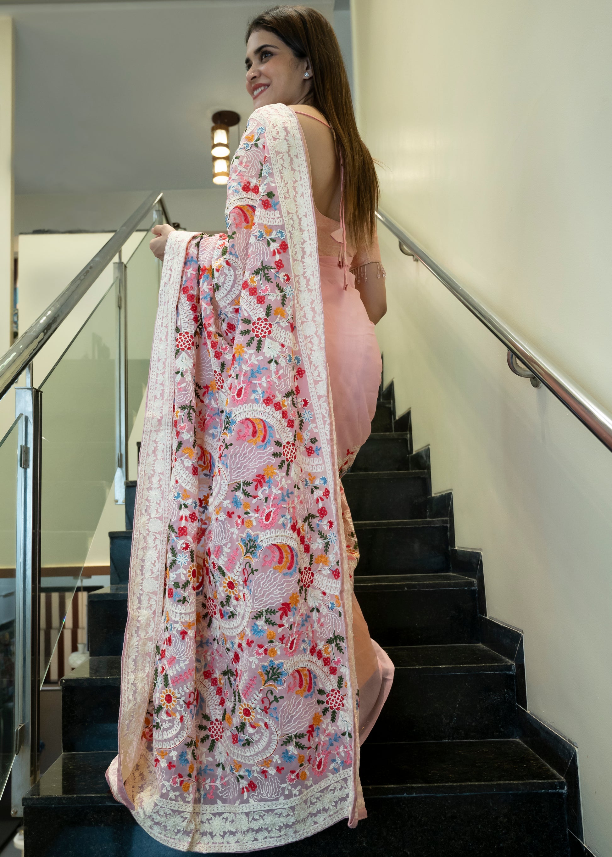 Elevate your ethnic wardrobe with this designer threadwork saree, meticulously crafted to showcase intricate thread embroidery. The delicate detailing enhances the fabric’s elegance, making it perfect for festive occasions and formal events. Expertly designed to blend traditional artistry with contemporary style, this saree offers both sophistication and comfort for the discerning wearer.