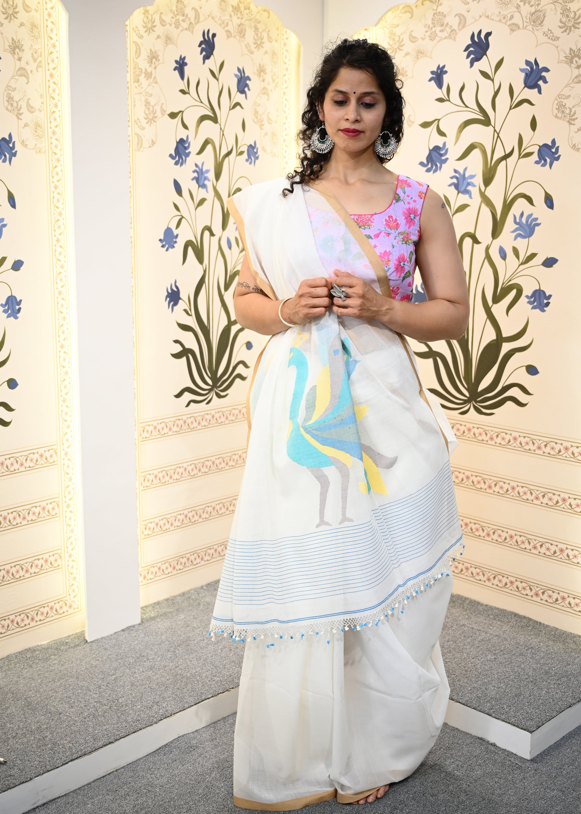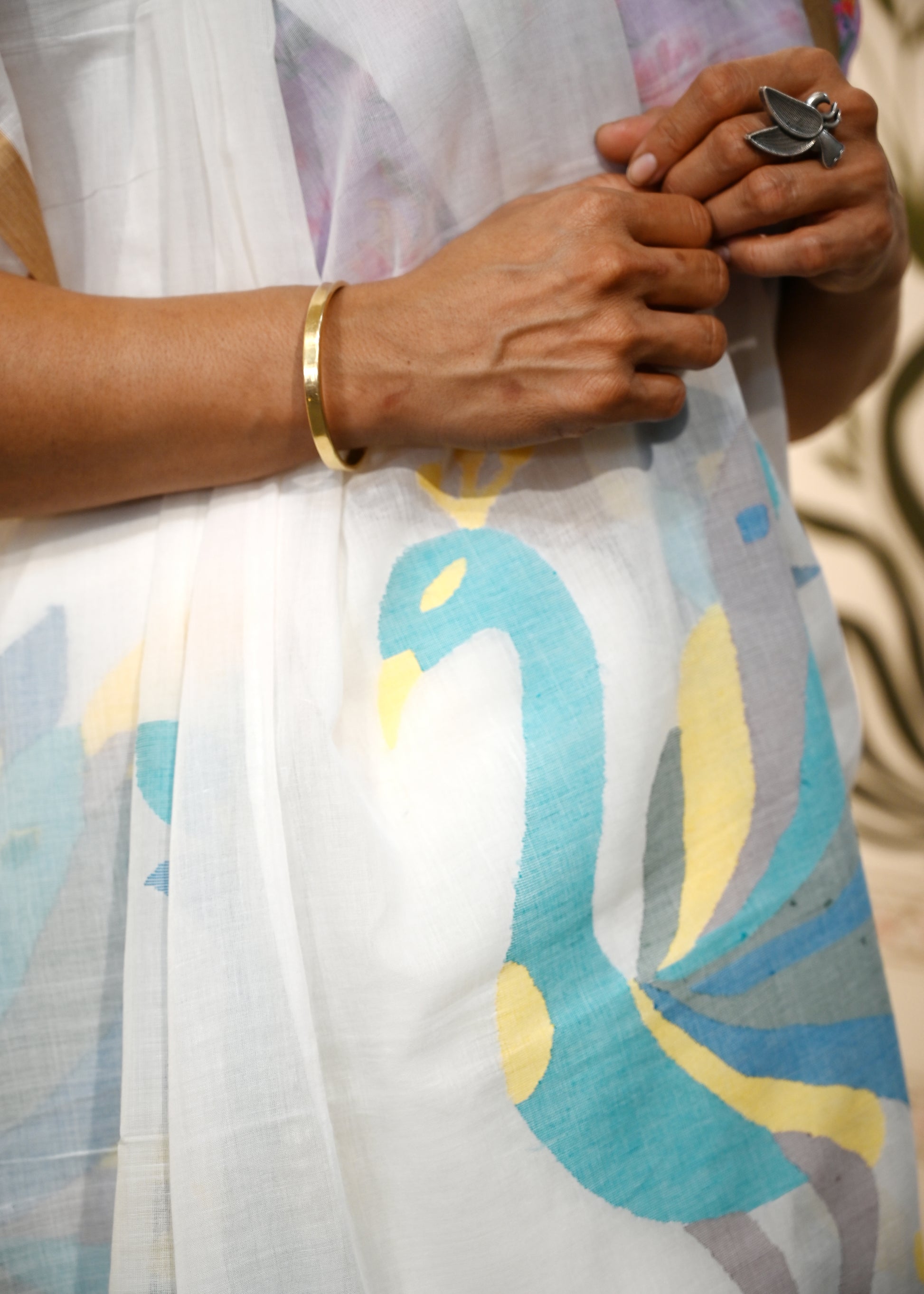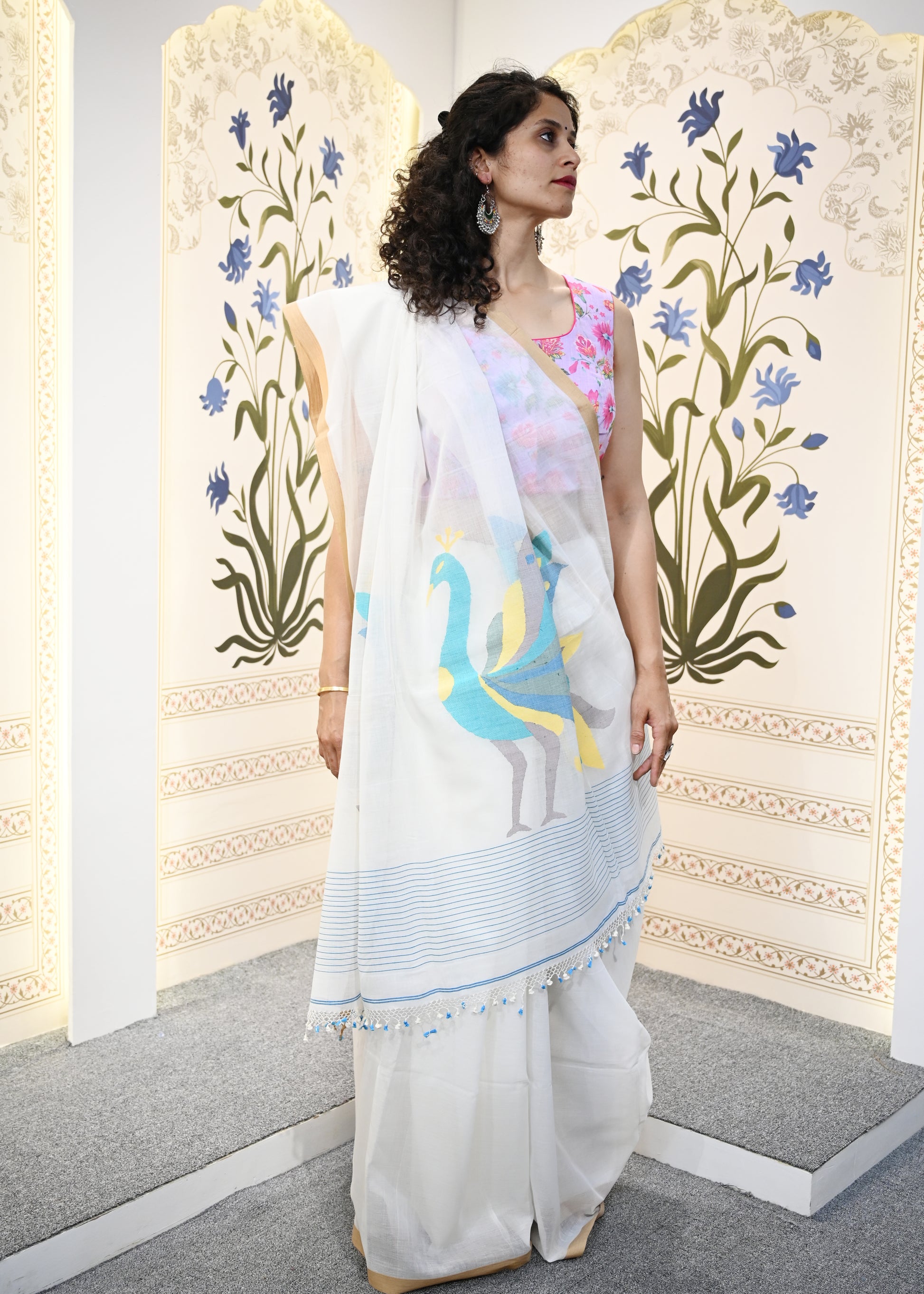 Mulcotton Jamdani: A masterpiece of traditional weaving craftsmanship. This handwoven saree features the intricate jamdani technique, showcasing delicate motifs including the iconic ghor bari and pakhi (bird) patterns on the pallu. Crafted from premium mulcotton blend, it offers exceptional softness against the skin while maintaining the structural integrity essential for traditional draping. The breathable fabric ensures comfort in warm climates, making it ideal for both everyday wear and special occasions. Each piece reflects generations of weaving expertise, combining heritage artistry with modern comfort standards.
